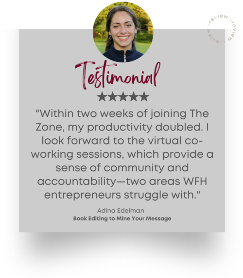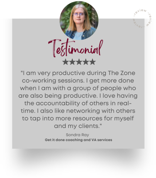 Whether you attend every event offered or just pop into a virtual coworking session or one of our special events when your schedule allows, you will tackle more of your tasks, see the productivity boost from getting into a flow state, expand your network, and learn new skills.